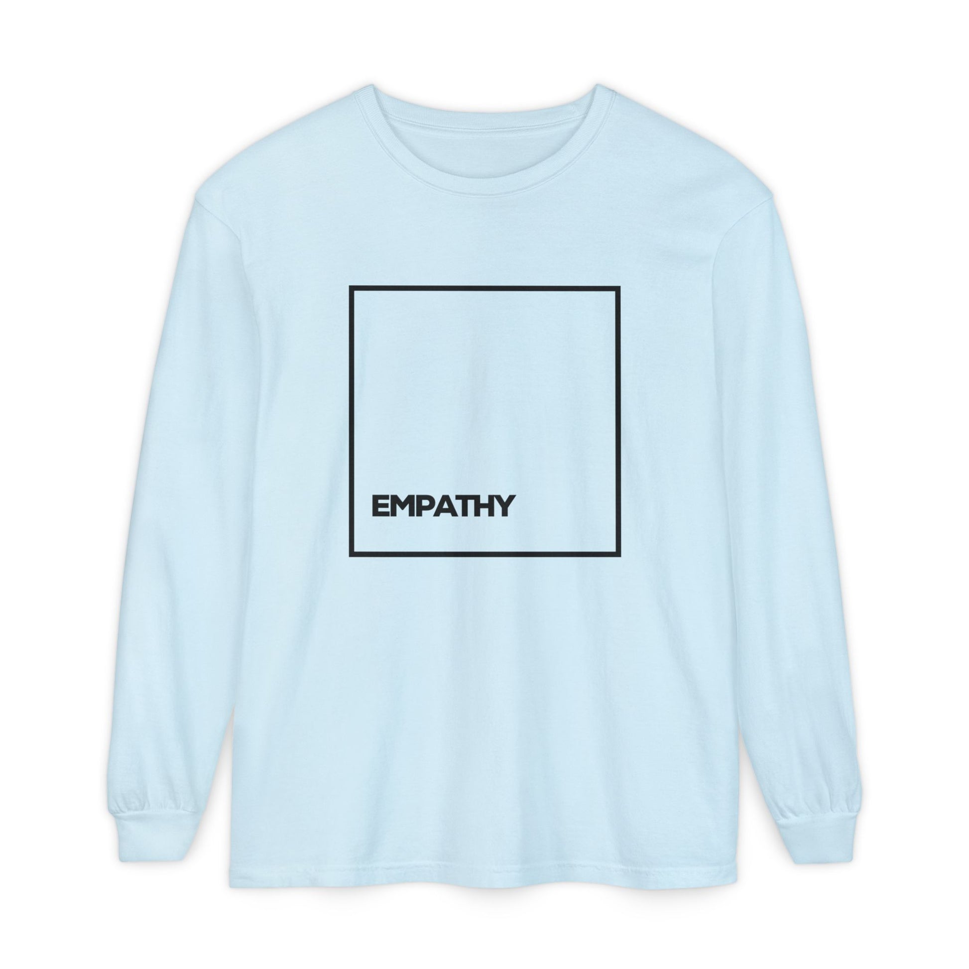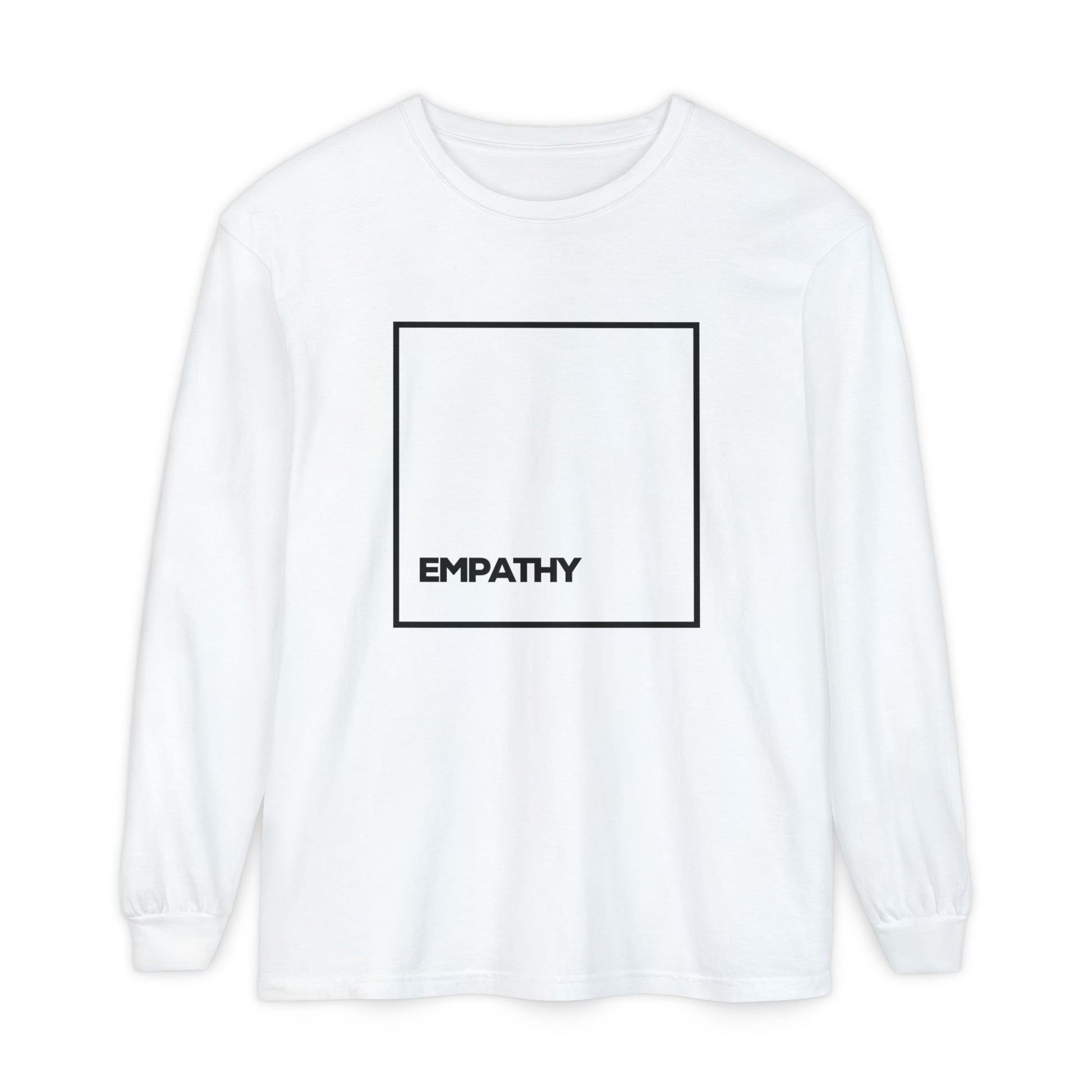 Empathy Graphic Unisex Long Sleeve Tee inspired by recovery and compassion. It gives a comforting and supportive vibe, perfect for those practicing empathy and involved in addiction recovery. Suitable for adults and those who value compassion as a universal language. Ideal for occasions promoting human kindness such as Recovery Month. Appropriate for anyone seeking to display a message of empathy.