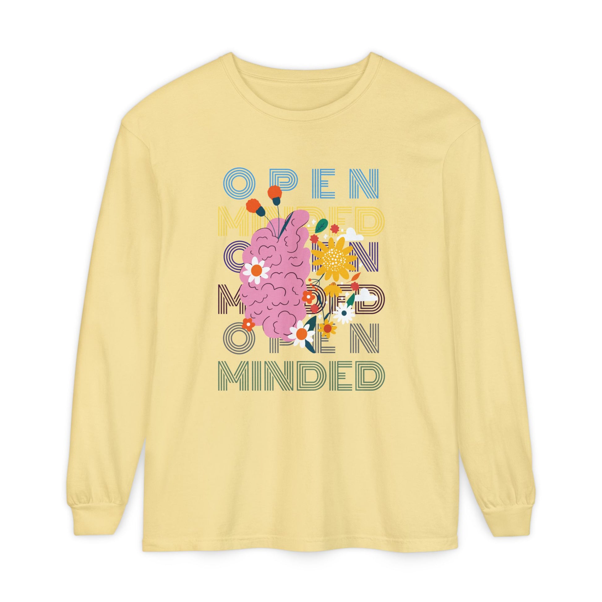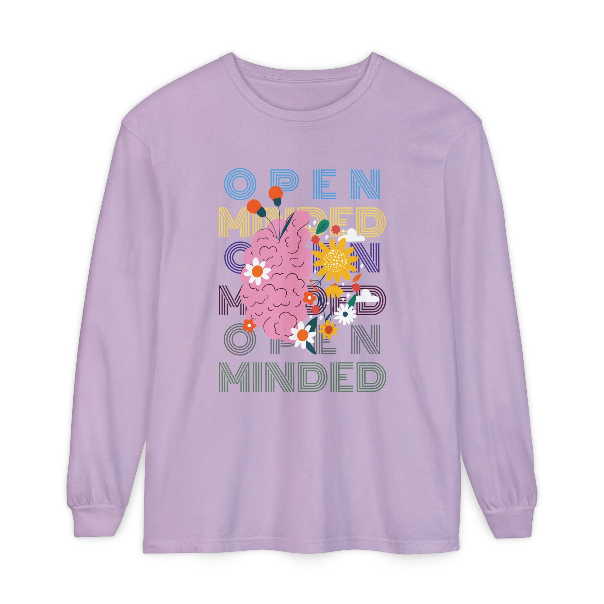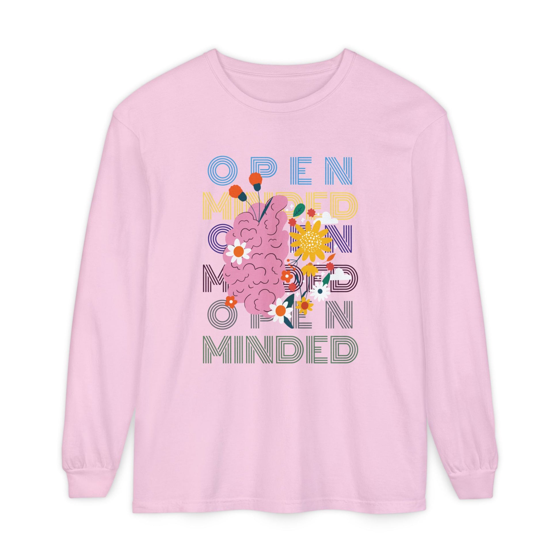 Open Minded Long Sleeve Tee Inspires the possibility of new ideas, free thinking, creative solutions, and different perspectives. This shirt is suitable for anyone that is wanting to wear a bold message inpiring open minded positivity.